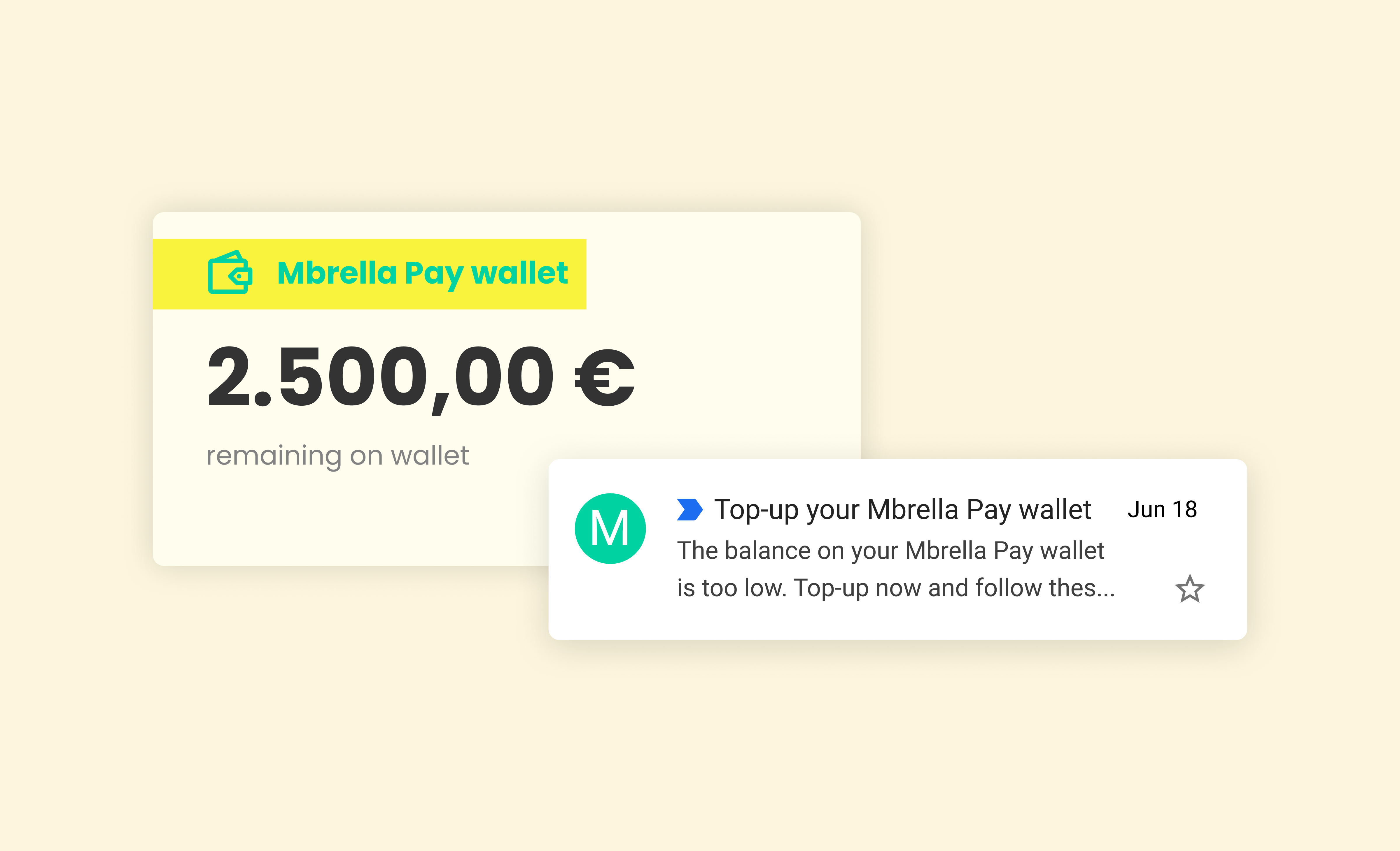 We'll also send you an email when your balance is getting low, so you can easily top up and have your employees keep making purchases with ease.