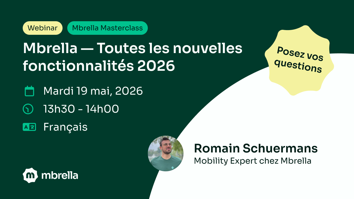 Mbrella est la première solution de mobilité d'entreprise conçue pour responsabiliser les employés et soulager complètement les professionnels des ressources humaines. Nous proposons des logiciels qui vous aident à gérer les budgets mobilité, les indemnités de trajet, les abonnements aux transports publics et bien plus encore.