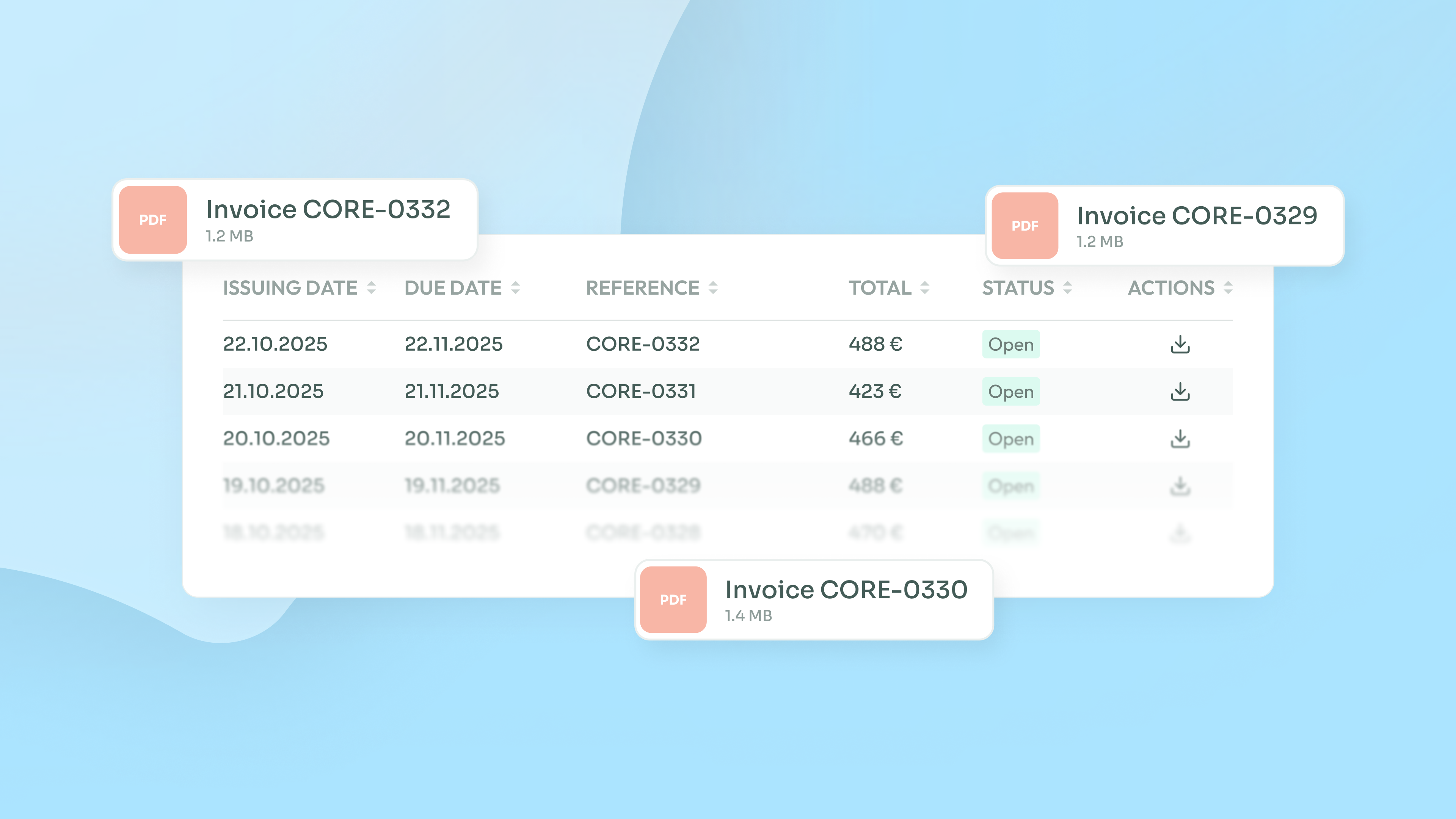 - Edit on the fly: Need to update your billing info? Change your company address, email, or VAT number right from the platform.